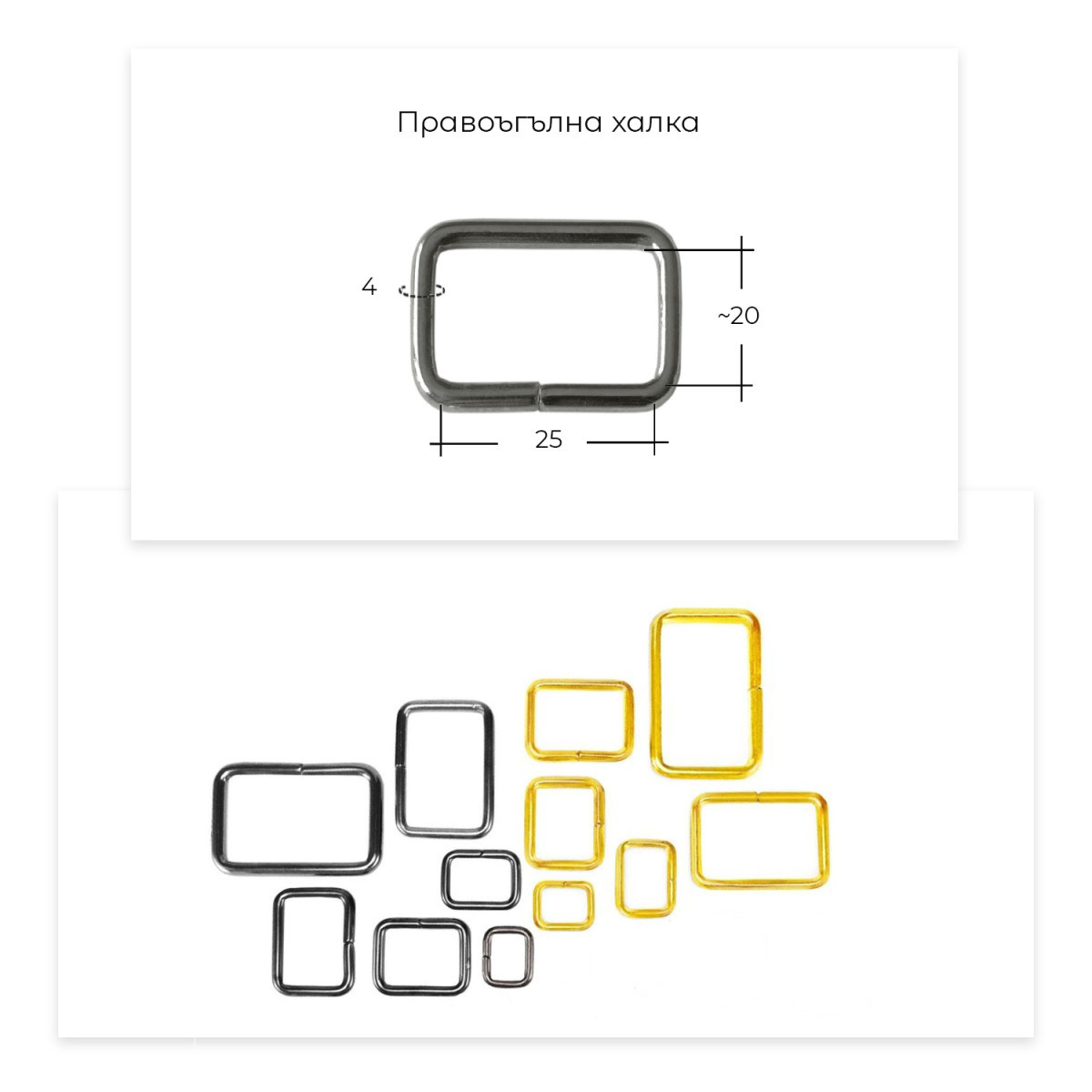 Металните правоъгълни халки са изработени от железни сплави, но не са тествани и сертифицирани за здравина. Препоръчва се употребата им да бъде съобразена с това и да не се използват за продукти, носещи специфични отговорности.