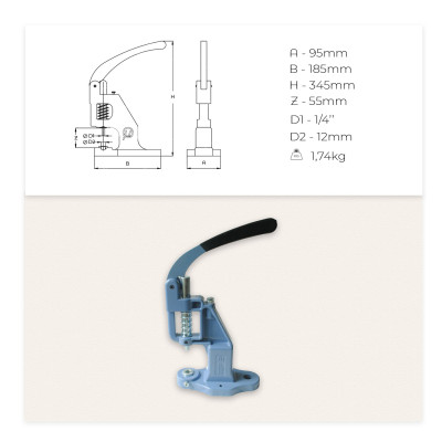 Употреба: Комбинираната машинка/преса в комбинации с матриците и ножовете предлагани в магазина се използва за поставяне на рапиди, капси, тик-так копчета, дънкови копчета, копчета Чико, пробиване на прецизни дупки в различни материали, за обличане на копчета и много други ремонтни дейности в кожарството, производството на дрехи, за обувки, чанти, раници и др.